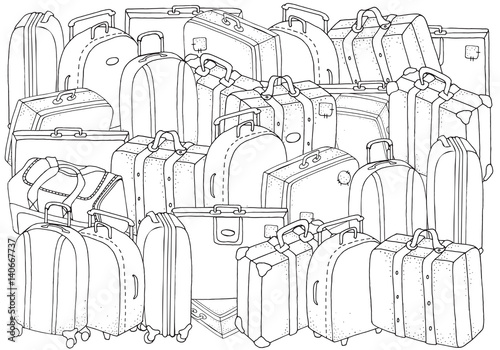 Set Of Bags And Suitcases Coloring Book Page For Adult And