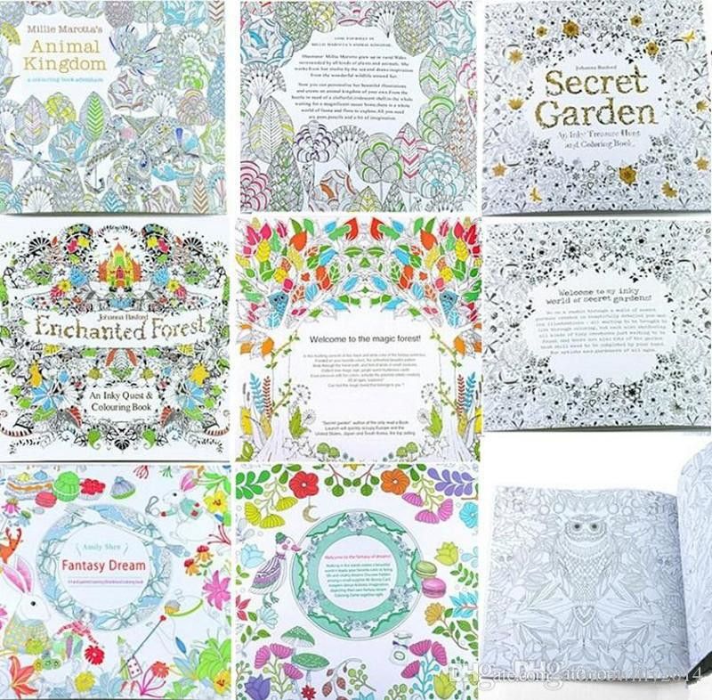 Adult Coloring Books 4 Designs Secret Garden Animal Kingdom Fantasy Dream And Enchanted Forest 24 Pages Adult Painting Colouring Books 2016 Colouring