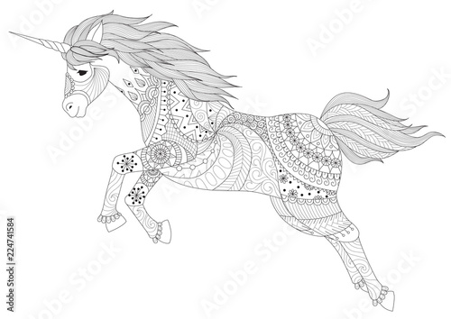Black Line Unicorn Coloring Book Page Stock Image Download Now