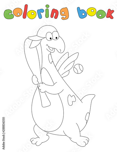 Cartoon Dragon Hits The Ball With A Baseball Bat Coloring
