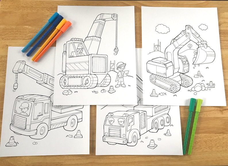 Cute Construction Coloring Page Set Downloadable Pdf Files